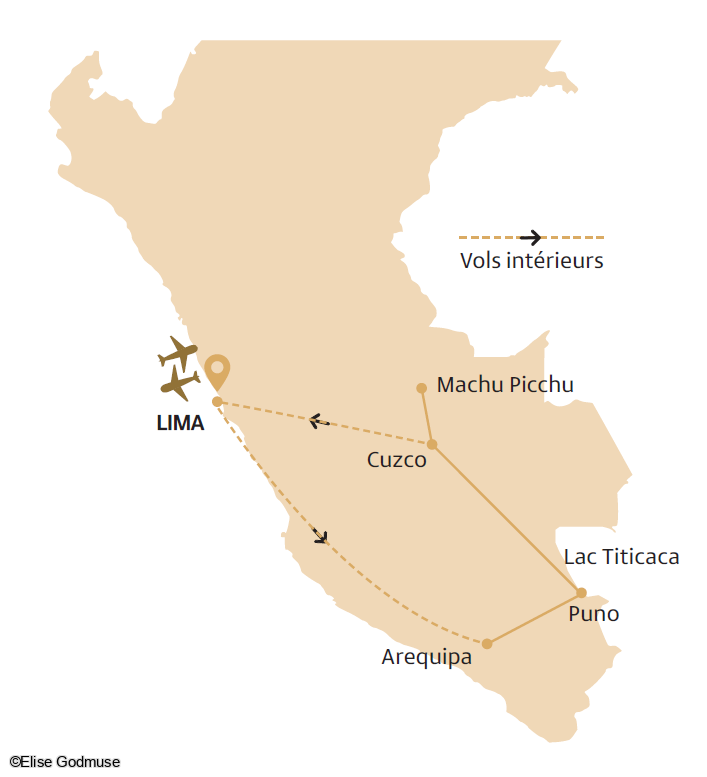 En fonction des horaires de vol, transfert à l’aéroport de Cuzco. Envol à destination de Lima et correspondance pour la France (l'escale à Lima est volontairement prévue avec un long battement entre le vol domestique et le vol transatlantique).