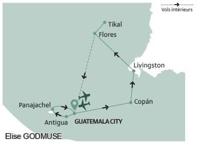 • Les vols internationaux France/Guatemala City/France, avec escale, sur compagnie régulière en classe économique avec bagage inclus.